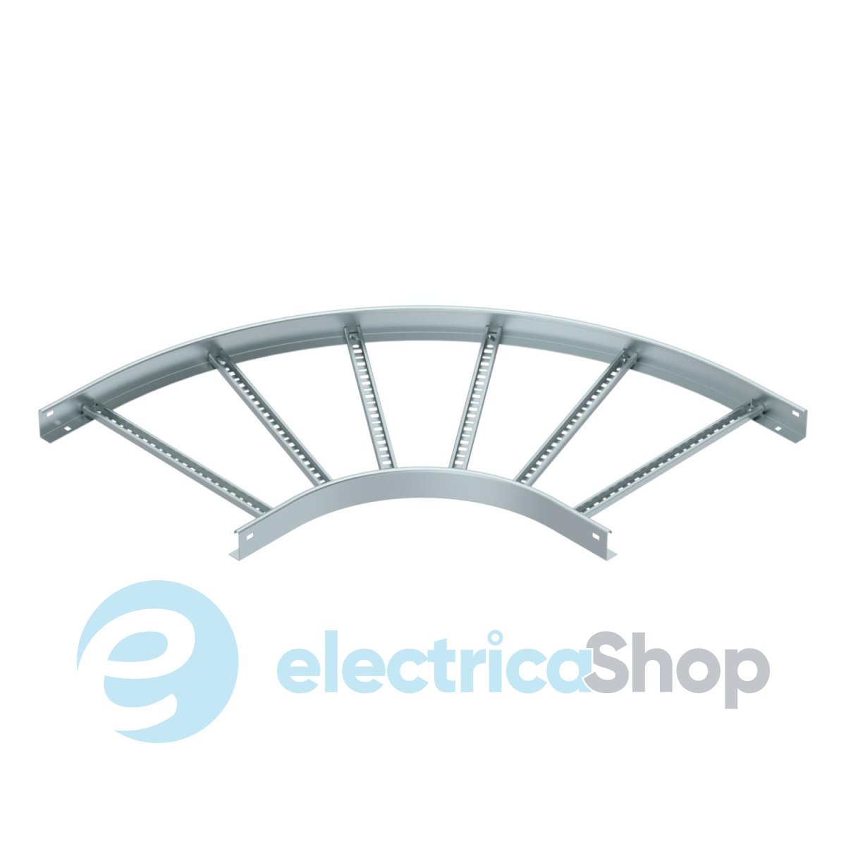 Горизонтальная угловая секция 90° с приваренной перекладиной для монтажа на любых кабельных лотках лестничного типа с боковыми стенками высотой 60 мм.