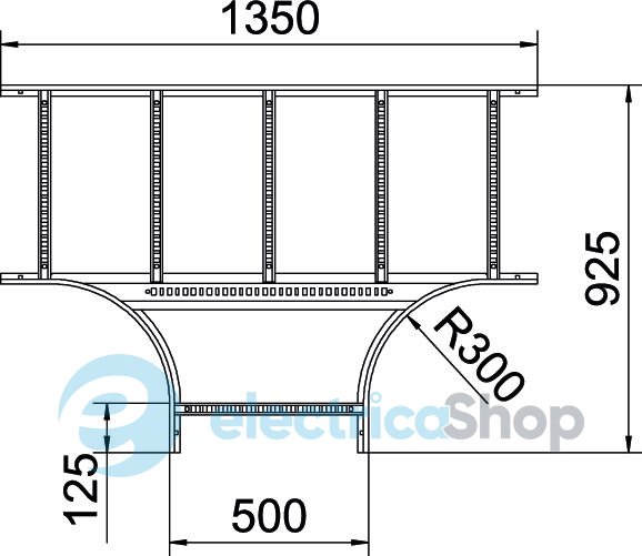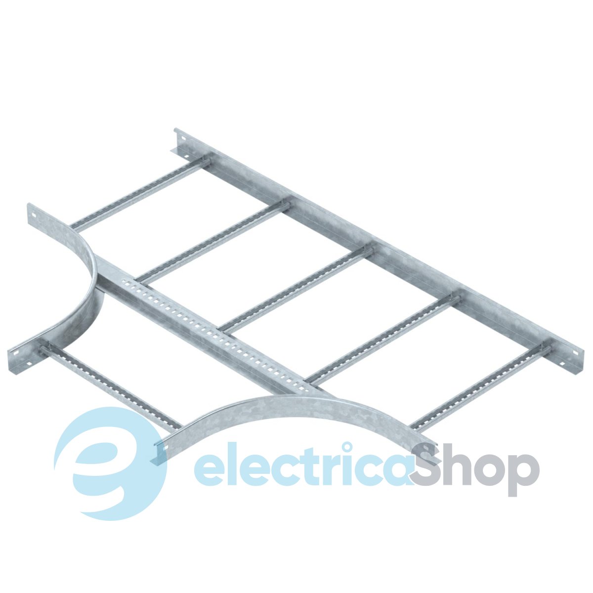 Т-образная секция, горизонтальная, с приваренной перекладиной для монтажа на любых кабельных лотках лестничного типа с боковыми стенками высотой 60 мм.