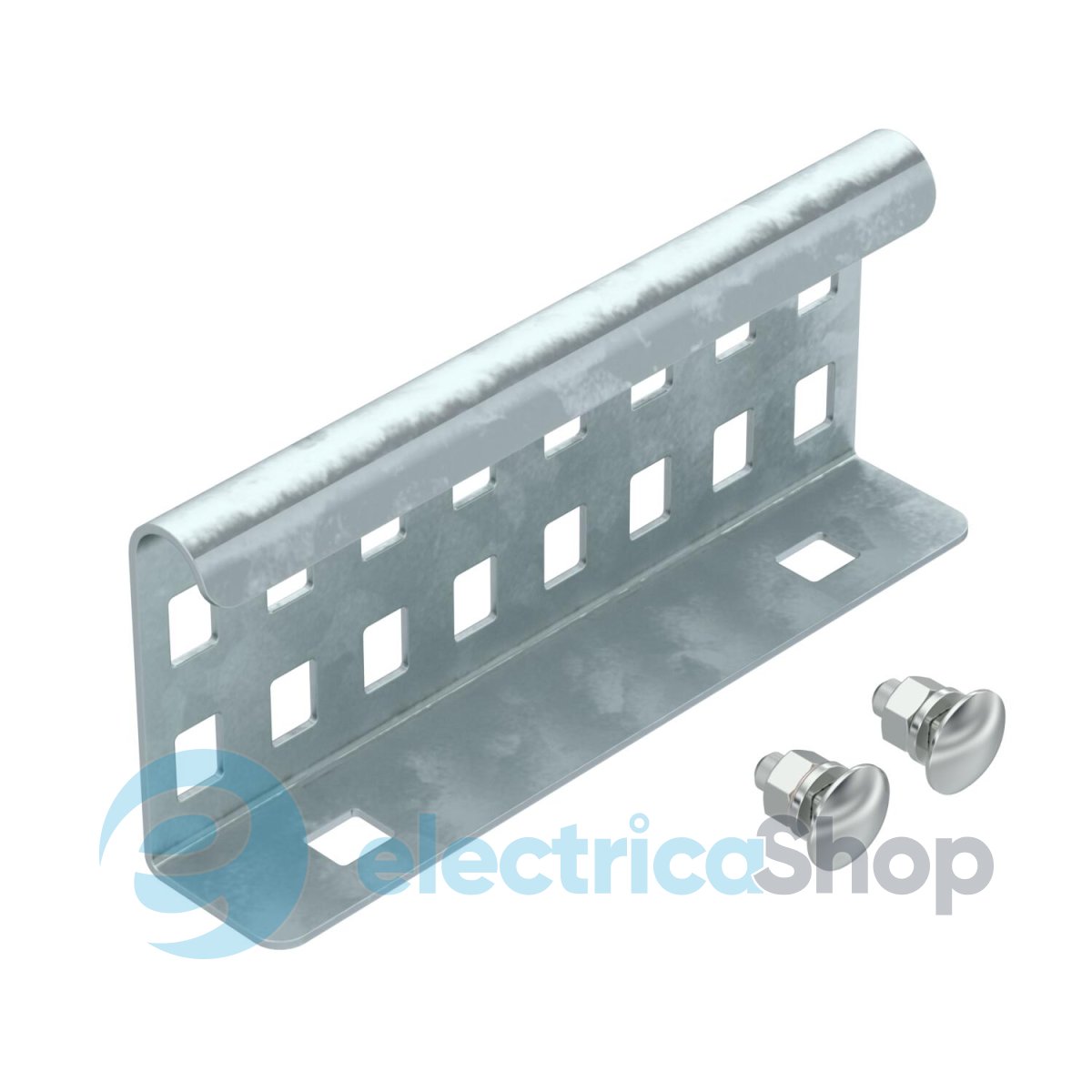 Продольный соединитель в качестве внешнего крепления для фиксации кабельных лотков лестничного типа и фасонных деталей с высотой боковой стенки 60 мм и сквозной перфорацией стенки.