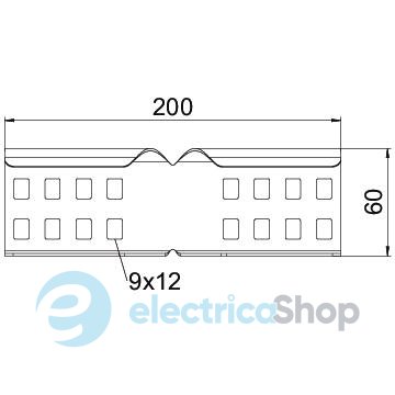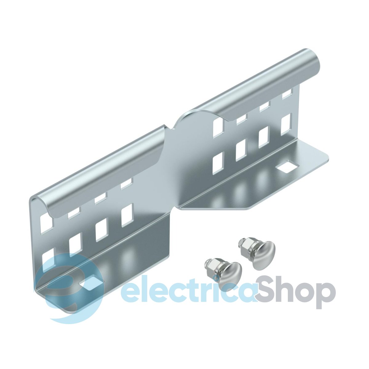Угловой соединитель для внешнего крепления кабельных лотков лестничного типа и фасонных деталей с боковой стенкой высотой 60 мм и сквозной перфорацией.