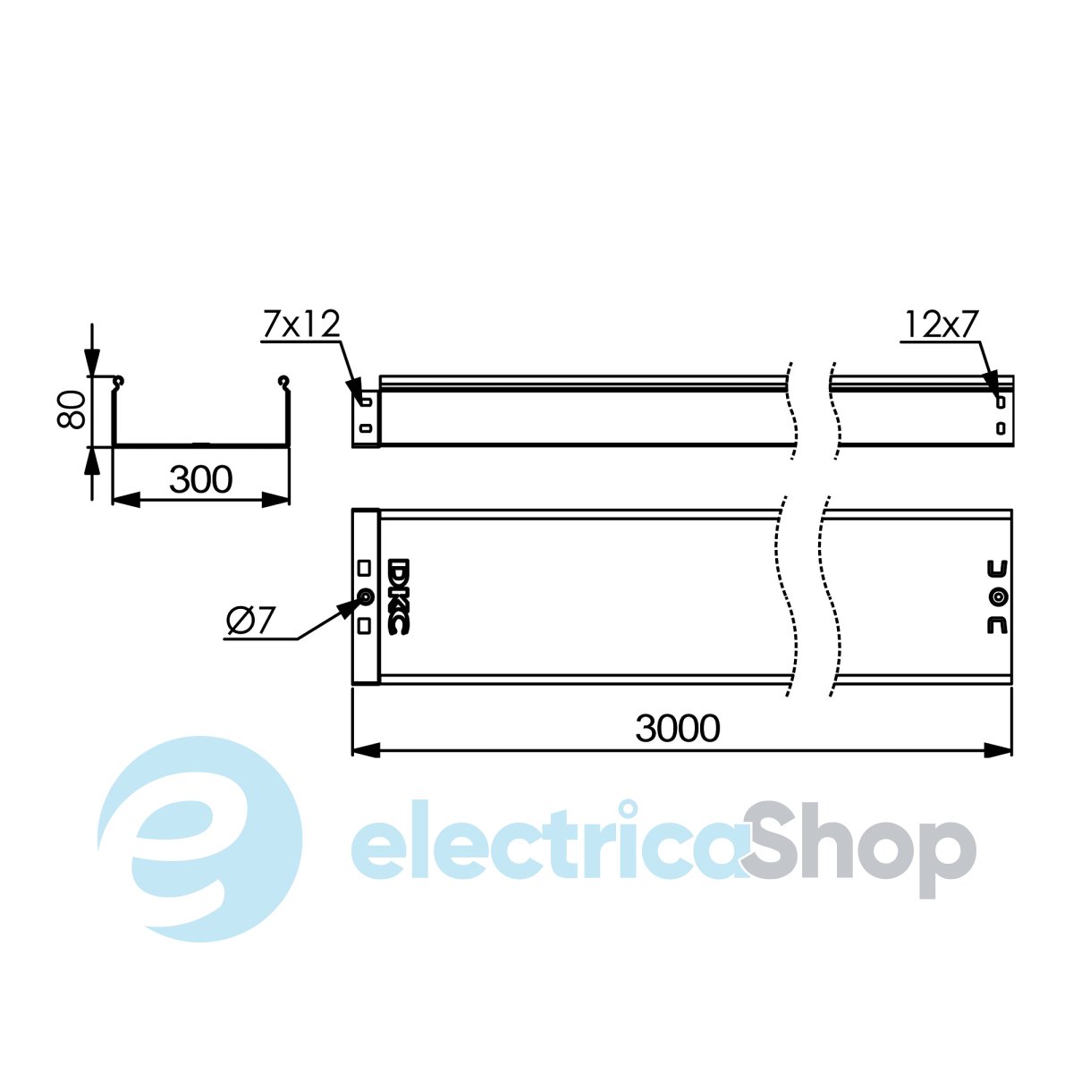 Неперфорированные листовые лотки ДКС применяются для прокладки кабеля как в помещении, так и на открытом воздухе. Лотки отличаются высокой несущей способностью – подформовка, производимая при производстве этой продукции, создает дополнительное ребро жесткости, что увеличивает несущую способность системы до 54%. При применении крышки и уплотнителей может достигаться степень пыле- и влагозащиты до IP 44. Метод соединения "мама-папа" применяемый для системы, существенно сокращает время монтажа и создает непрерывный контур. Конструктив листовых лотков ДКС предупреждает повреждение кабеля при прокладке. Толщина стали – 0,8 мм, высота лотка – 80 мм, ширина – 300 мм, длина – 3000 мм. Полезное сечение – 23600 мм. Исполнение – "сталь, оцинкованная по методу Сендзимира".