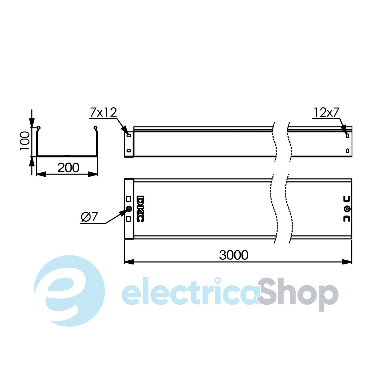 Неперфорированные листовые лотки ДКС применяются для прокладки кабеля как в помещении, так и на открытом воздухе. Лотки отличаются высокой несущей способностью – подформовка, производимая при производстве этой продукции, создает дополнительное ребро жесткости, что увеличивает несущую способность системы до 54%. При применении крышки и уплотнителей может достигаться степень пыле- и влагозащиты до IP 44. Метод соединения "мама-папа" применяемый для системы, существенно сокращает время монтажа и создает непрерывный контур. Конструктив листовых лотков ДКС предупреждает повреждение кабеля при прокладке. Толщина стали – 0,8 мм, высота лотка – 100 мм, ширина – 200 мм, длина – 3000 мм. Полезное сечение – 19700 мм. Исполнение – "сталь, оцинкованная по методу Сендзимира".