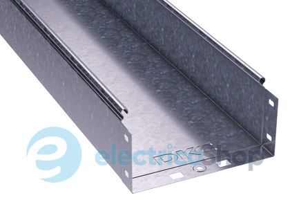 Неперфорированные листовые лотки ДКС применяются для прокладки кабеля как в помещении, так и на открытом воздухе. Лотки отличаются высокой несущей способностью – подформовка, производимая при производстве этой продукции, создает дополнительное ребро жесткости, что увеличивает несущую способность системы до 54%. При применении крышки и уплотнителей может достигаться степень пыле- и влагозащиты до IP 44. Метод соединения "мама-папа" применяемый для системы, существенно сокращает время монтажа и создает непрерывный контур. Конструктив листовых лотков ДКС предупреждает повреждение кабеля при прокладке. Толщина стали – 0,8 мм, высота лотка – 100 мм, ширина – 300 мм, длина – 3000 мм. Полезное сечение – 29600 мм. Исполнение – "сталь, оцинкованная по методу Сендзимира".