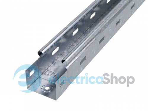 Перфорированные листовые лотки ДКС применяются для прокладки кабеля как в помещении, так и на открытом воздухе. Лотки отличаются высокой несущей способностью – подформовка, производимая при производстве этой продукции, создает дополнительное ребро жесткости, что увеличивает несущую способность системы до 54%. Перфорация сокращает вес конструкции. В лотках имеются отверстия для отвода кабеля диаметром 11 мм, 17 мм, 21 мм. Степень пыле- и влагозащиты перфорированных лотков – IP 10 при использовании крышек, входящих в состав системы. Метод соединения "мама-папа" применяемый для системы, существенно сокращает время монтажа и создает непрерывный контур. Конструктив листовых лотков ДКС предупреждает повреждение кабеля при прокладке. Толщина стали – 0,7 мм, высота лотка – 50 мм, ширина – 50 мм, длина – 2000 мм. Полезное сечение – 2500 мм. Исполнение – "сталь, оцинкованная по методу Сендзимира".
