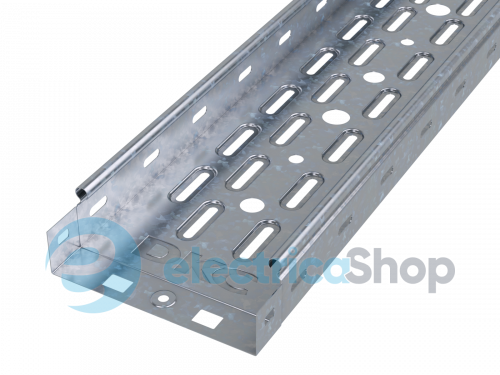 Перфорированные листовые лотки ДКС применяются для прокладки кабеля как в помещении, так и на открытом воздухе. Лотки отличаются высокой несущей способностью – подформовка, производимая при производстве этой продукции, создает дополнительное ребро жесткости, что увеличивает несущую способность системы до 54%. Перфорация сокращает вес конструкции. В лотках имеются отверстия для отвода кабеля диаметром 11 мм, 17 мм, 21 мм. Степень пыле- и влагозащиты перфорированных лотков – IP 10 при использовании крышек, входящих в состав системы. Метод соединения "мама-папа" применяемый для системы, существенно сокращает время монтажа и создает непрерывный контур. Конструктив листовых лотков ДКС предупреждает повреждение кабеля при прокладке. Толщина стали – 0,7 мм, высота лотка – 50 мм, ширина – 150 мм, длина – 3000 мм. Полезное сечение – 7400 мм. Исполнение – "сталь, оцинкованная по методу Сендзимира".