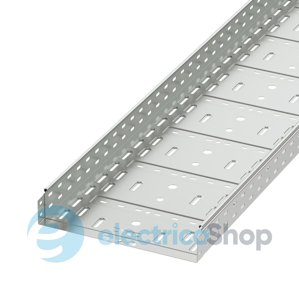 Перфорированные листовые лотки ДКС применяются для прокладки кабеля как в помещении, так и на открытом воздухе. Лотки отличаются высокой несущей способностью – подформовка, производимая при производстве этой продукции, создает дополнительное ребро жесткости, что увеличивает несущую способность системы до 54%. Перфорация сокращает вес конструкции. В лотках имеются отверстия для отвода кабеля диаметром 11 мм, 17 мм, 21 мм. Степень пыле- и влагозащиты перфорированных лотков – IP 10 при использовании крышек, входящих в состав системы. Метод соединения "мама-папа" применяемый для системы, существенно сокращает время монтажа и создает непрерывный контур. Конструктив листовых лотков ДКС предупреждает повреждение кабеля при прокладке. Толщина стали – 1 мм, высота лотка – 80 мм, ширина – 400 мм, длина – 3000 мм. Полезное сечение – 31500 мм. Исполнение – "сталь, оцинкованная по методу Сендзимира".