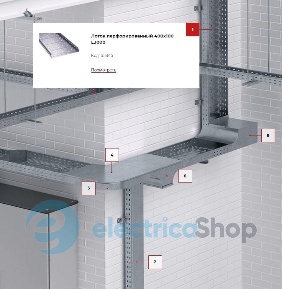 Переходник из лотка Н100 мм на лоток с Н80мм с сохранением контакта, основание 400, ДКС 36558 (Сендзимира)