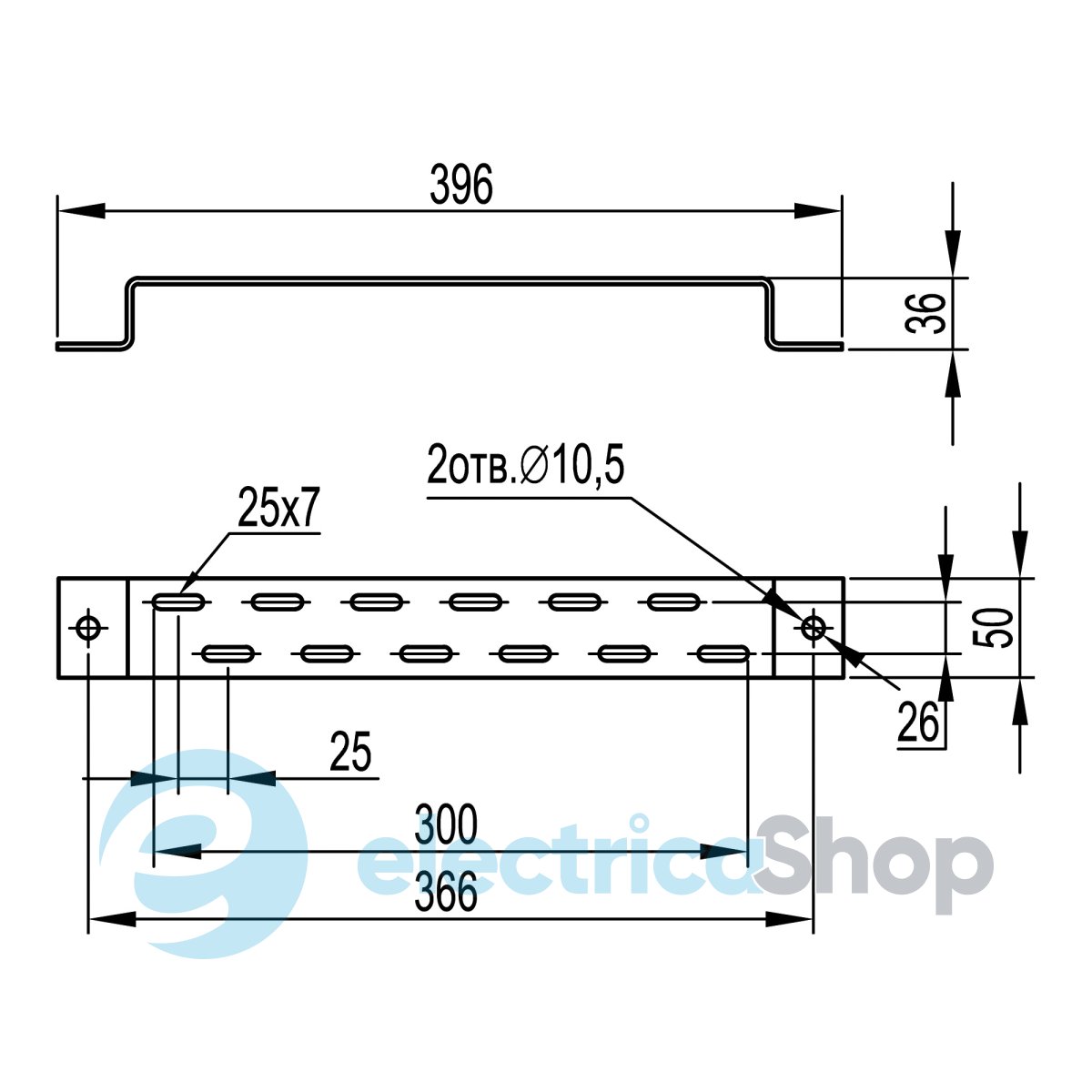 Крепление предназначено для фиксации к стене при вертикальном или напольном монтаже лотков и для организации подвеса на шпильках. Скоба расчитана на лоток ширины до 300 мм.
