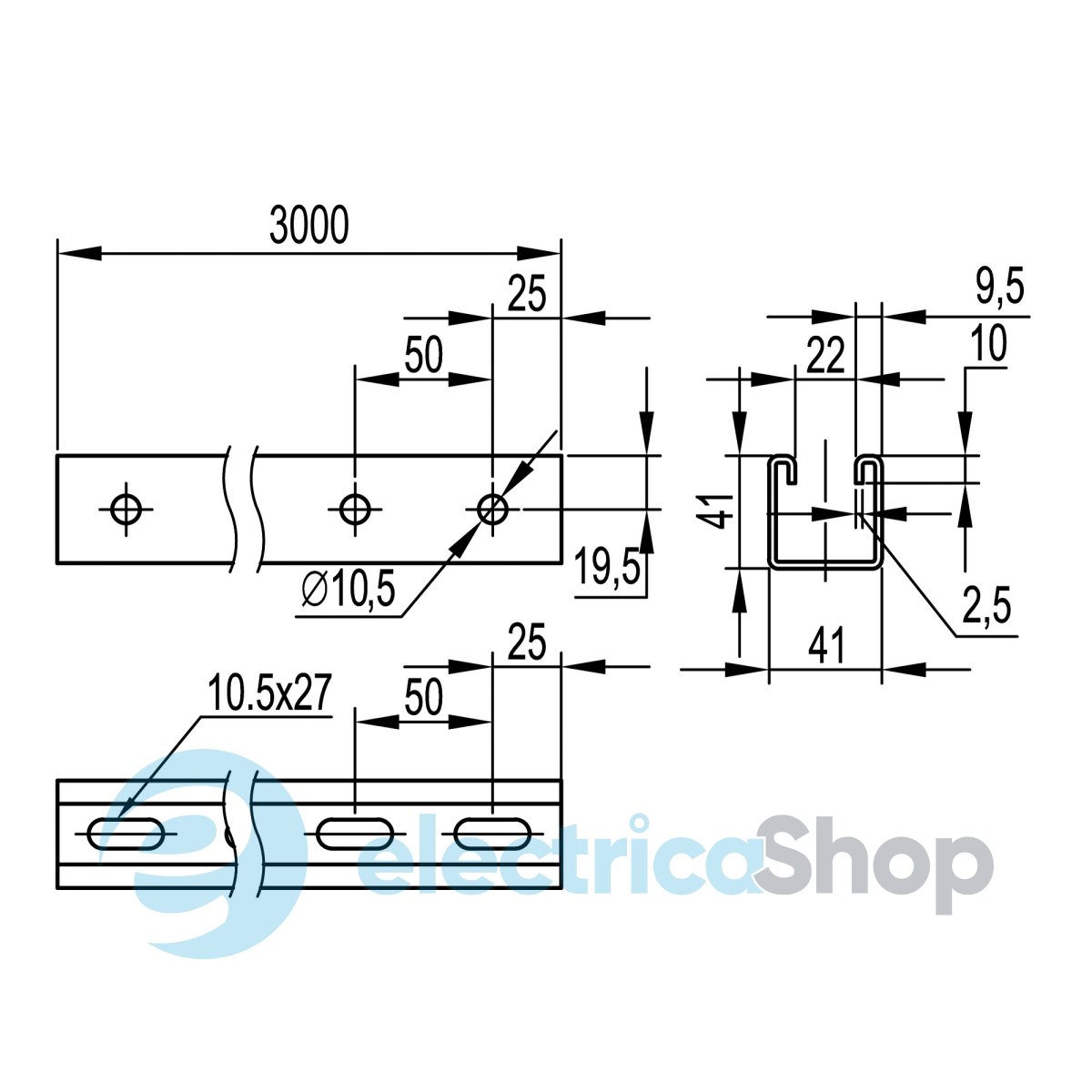 С-образный профиль BPM-41 41х41 мм изготовлен из стали толщиной 2,5 мм. Применяется для крепления в подвес или к стене, монтажа консолей: ВВН-60, ВВН-70, BBD-21, BBP-21/41, подвеса лотков и световых приборов на шпильках, а также в качестве кабеленесущих систем для осветительных трасс. Длина 3000 мм.