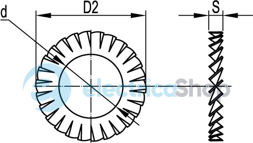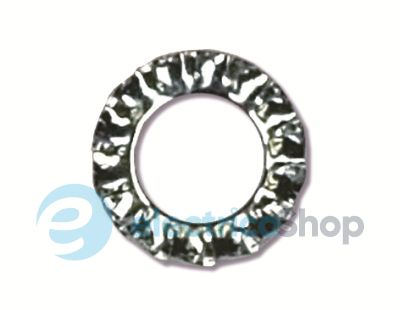 Стопорная шайб с узкими полями используется для предотвращения самопроизвольного развинчивания при соединении между собой лестничных лотков.