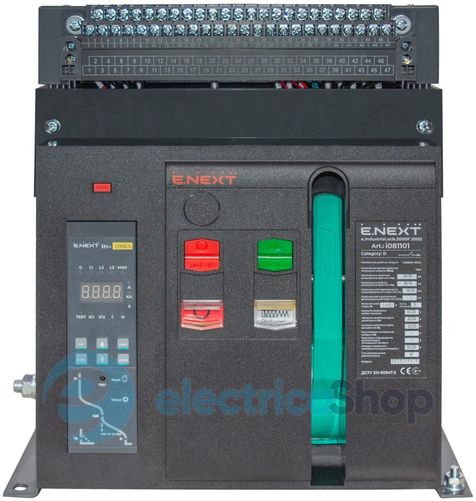 Воздушные автоматические выключатели e.industrial.acb Предназначены для защиты низковольтных электрических сетей и оборудования от токов перегрузки и короткого замыкания, в том числе однофазных замыканий на землю, а также для проведения нечастых оперативных коммутаций электрических сетей. Диапазон регулировки тока отключения при длительной перегрузке, Ir1 (погрешность ±10 %) - (0,4-1) In+Off.
