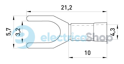 Изолированный вилочный наконечник рассчитан на сети переменного и постоянного тока напряжением до 400 В. Наконечник изготовлен из луженой электротехнической меди, частично покрытой полиамидом.Технические данные