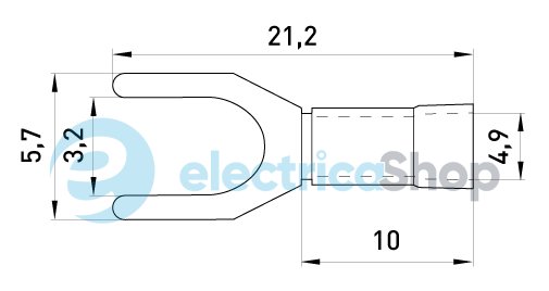 Изолированный вилочный наконечник рассчитан на сети переменного и постоянного тока напряжением до 400 В. Наконечник изготовлен из луженой электротехнической меди, частично покрытой полиамидом.Технические данные