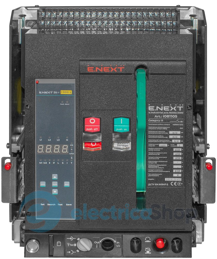 Воздушные автоматические выключатели e.industrial.acb Предназначены для защиты низковольтных электрических сетей и оборудования от токов перегрузки и короткого замыкания, в том числе однофазных замыканий на землю, а также для проведения нечастых оперативных коммутаций электрических сетей. Диапазон регулировки тока отключения при длительной перегрузке, Ir1 (погрешность ±10 %) - (0,4-1) In+Off.