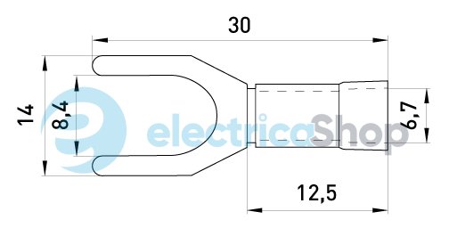 Изолированный вилочный наконечник рассчитан на сети переменного и постоянного тока напряжением до 400 В. Наконечник изготовлен из луженой электротехнической меди, частично покрытой полиамидом.Технические данные
