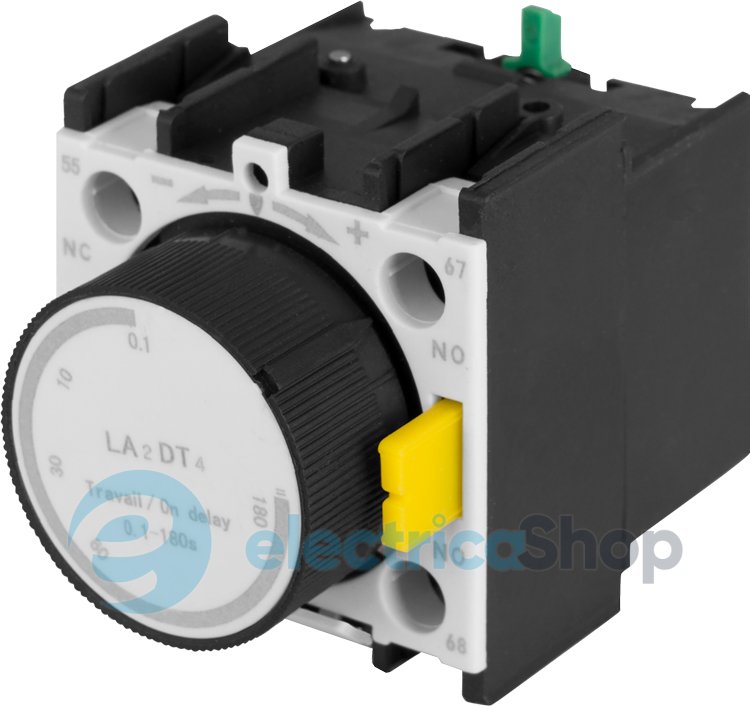 Приставка контактная с задержкой времени e.pro.ukc.ut.on180, задержка на вкл. 10–180 сек. Контакты срабатывают через установленное время после отключения контактора, на котором они установлены.