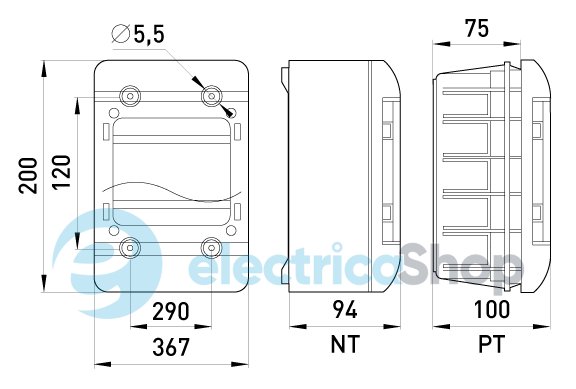 Корпус пластиковый, навесной (NT) 18-модульный, однорядный, IP 55 используется для установки модульных автоматических выключателей.