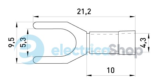 Изолированный вилочный наконечник рассчитан на сети переменного и постоянного тока напряжением до 400 В. Наконечник изготовлен из луженой электротехнической меди, частично покрытой полиамидом.Технические данные