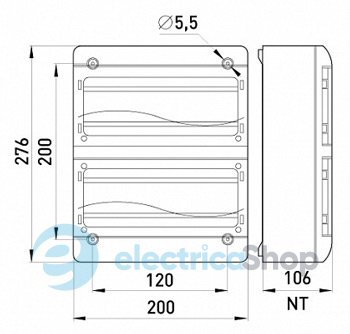 Корпус пластиковый, навесной (NT) 26-модульный, двухрядный, IP 40 используется для установки модульных автоматических выключателей.