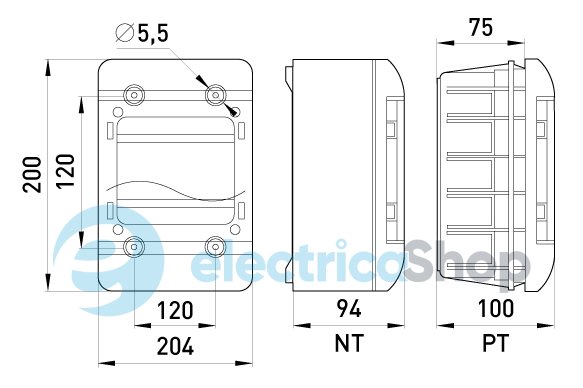 Корпус пластиковый, навесной (NT) 9-модульный, однорядный, IP 55 используется для установки модульных автоматических выключателей.