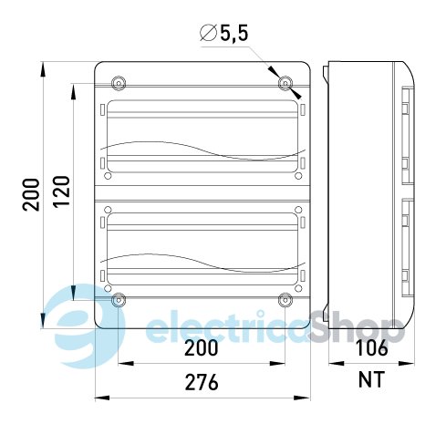 Корпус пластиковый, навесной (NT) 26-модульный, двухрядный, IP 55 используется для установки модульных автоматических выключателей.