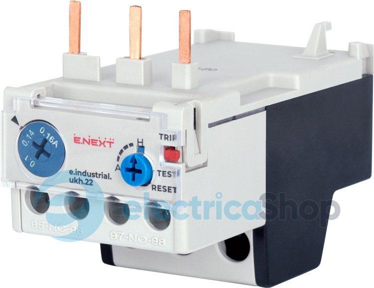 Тепловое реле e.industrial.ukh.22.0,16, номинальный ток 22А, диапазон регулировки 0.1-0.16 А предназначены для защиты трехфазных асинхронных электродвигателей с короткозамкнутым ротором от: перегрузки; асимметрии погрузки; обрыв фазы.