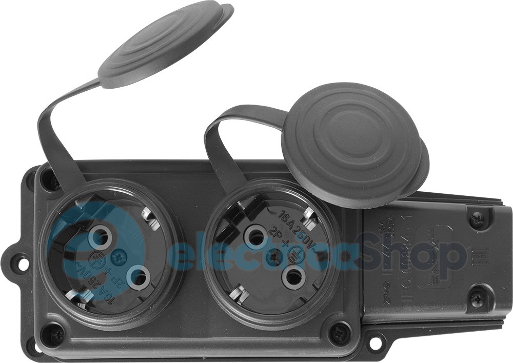 Розетка двойная с защитной каучуковой крышкой e.socket.rubber.029.2.16, с ж/к, 16А предназначена для использования в сложных эксплуатационных условиях. Благодаря своему корпусу, препятствующему попаданию воды, пыли, масел, обладающей антикоррозионным эффектом, разъемы используются при высокой и низкой температуре, в пыли, в помещениях с повышенной влажностью и других неблагоприятных условиях.