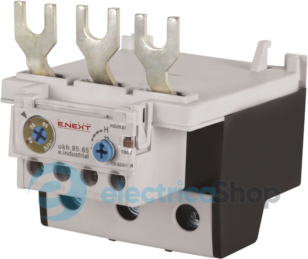 Тепловое реле e.industrial.ukh.85.65, номин. ток 85А, диап. регул. 45-65 А предназначены для защиты трехфазных асинхронных электродвигателей с короткозамкнутым ротором от перегрузки; асимметрии погрузки; обрыв фазы.