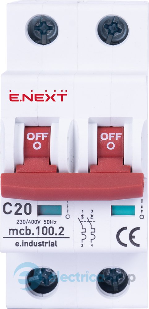 Модульный автоматический выключатель e.industrial.mcb.100.1.C20, 1P, 20А, C, 10kA i0180004 E.NEXT