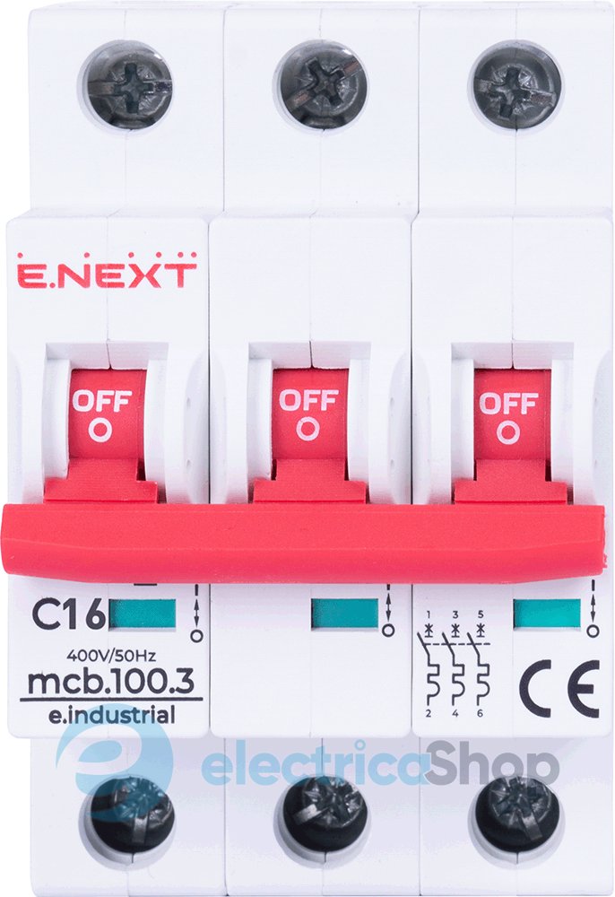 Модульный автоматический выключатель e.industrial.mcb.100.3.C16, 3 г, 16А, C, 10кА предназначен для защиты низковольтных электрических сетей и оборудования от токов перегрузки и короткого замыкания, а также нечастых оперативных коммутаций электрических сетей. Технические регламенты безопасности низковольтного электрического оборудования и электромагнитной совместимости оборудования ДСТУ IEC 60947-1:2008, ДСТУ IEC 60947-2:2008, ДСТУ IEC 60898-1:2005