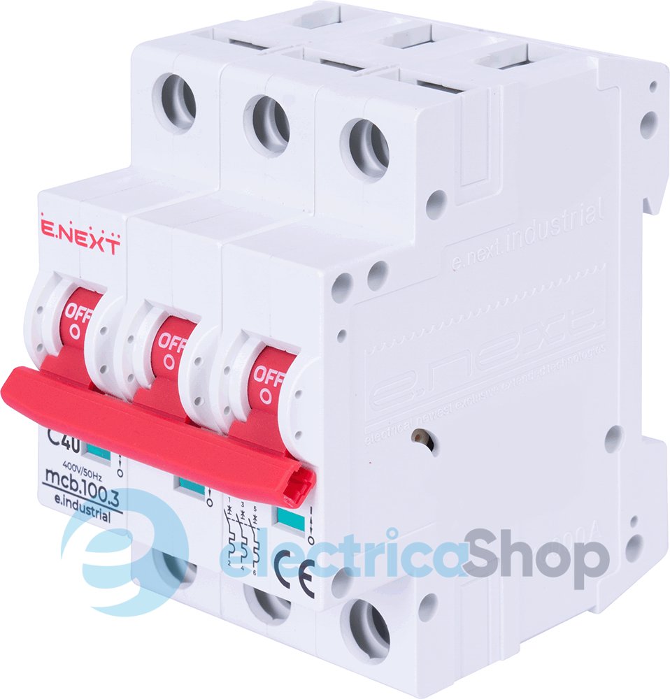 Модульный автоматический выключатель e.industrial.mcb.100.3.C40, 3 г, 40А, C, 10кА предназначен для защиты низковольтных электрических сетей и оборудования от токов перегрузки и короткого замыкания, а также нечастых оперативных коммутаций электрических сетей. Технические регламенты безопасности низковольтного электрического оборудования и электромагнитной совместимости оборудования ДСТУ IEC 60947-1:2008, ДСТУ IEC 60947-2:2008, ДСТУ IEC 60898-1:2005