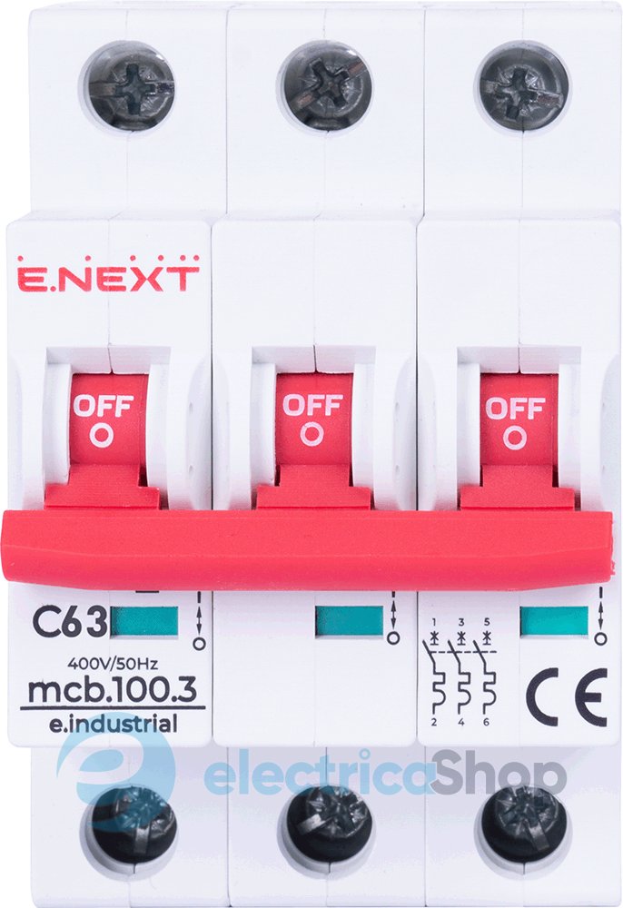 Модульный автоматический выключатель e.industrial.mcb.100.3.C63, 3 г, 63А, C, 10кА предназначен для защиты низковольтных электрических сетей и оборудования от токов перегрузки и короткого замыкания, а также нечастых оперативных коммутаций электрических сетей. Технические регламенты безопасности низковольтного электрического оборудования и электромагнитной совместимости оборудования ДСТУ IEC 60947-1:2008, ДСТУ IEC 60947-2:2008, ДСТУ IEC 60898-1:2005