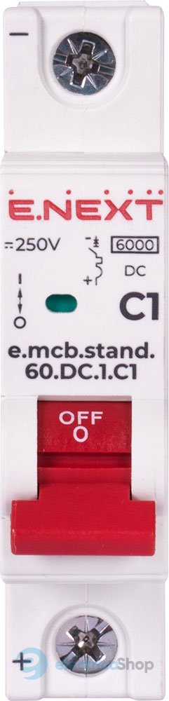 Модульный автоматический выключатель e.mcb.stand.60.DC.1.C16, 1P, 16А, C, 6kA, DC s081006 E.NEXT