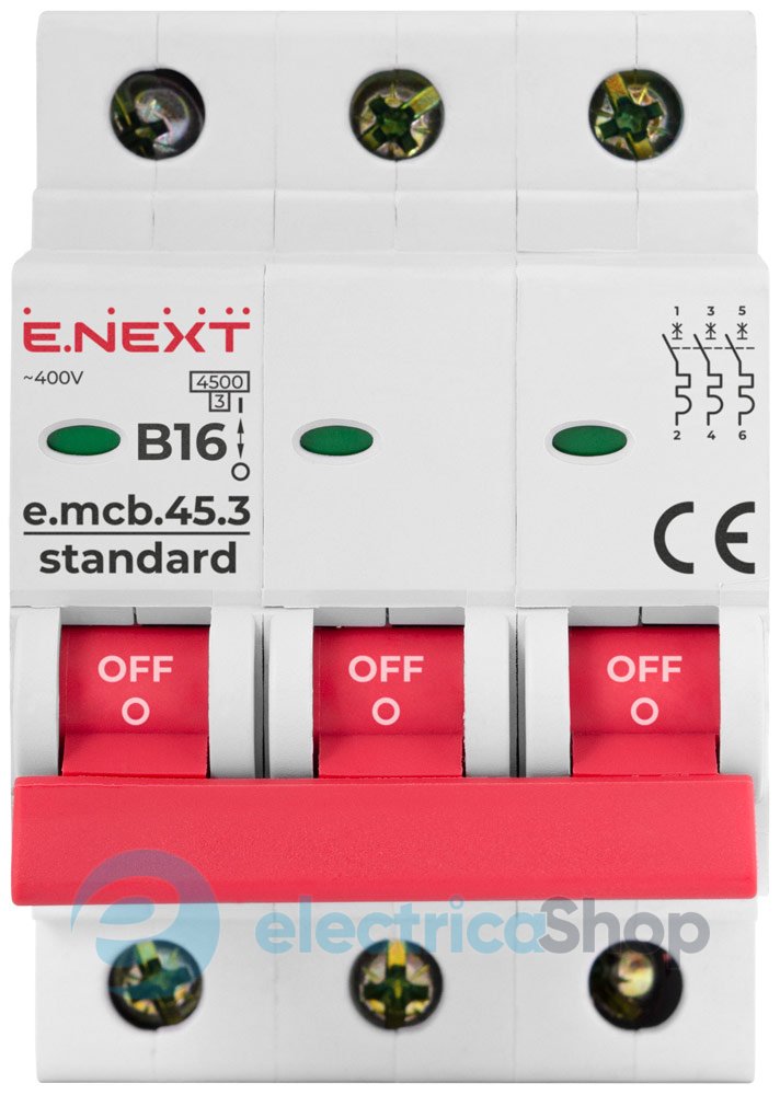 Модульный автоматический выключатель e.mcb.stand.45.4.В16, 4P, 16А, В, 4,5kA s001034 E.NEXT