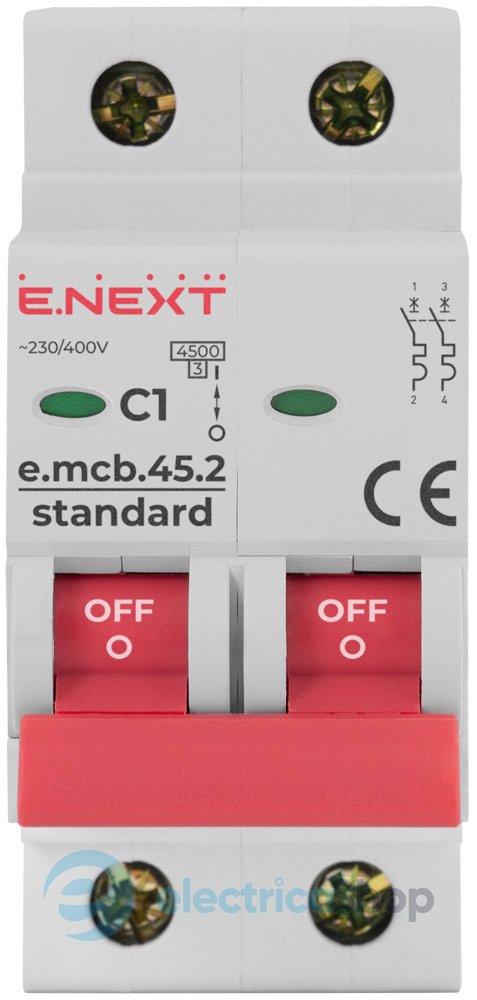 Модульный автоматический выключатель e.mcb.stand.45.2.C1, 2р, 1А, C, 4,5 кА предназначен для защиты электрических сетей и оборудования низкого напряжения от токов перегрузки и короткого замыкания, а также нечастых оперативных коммутации электрических сетей.