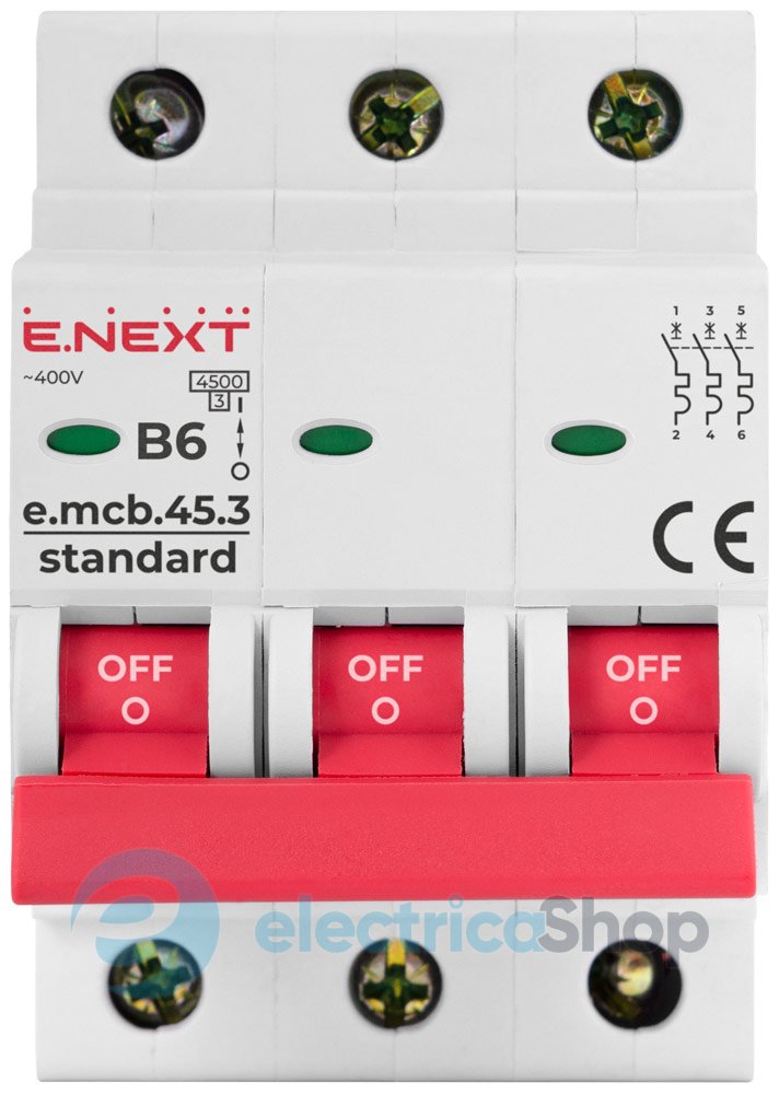 Модульный автоматический выключатель e.mcb.stand.45.3.B6, 3р, 6А, В, 4,5 кА предназначен для защиты электрических сетей и оборудования низкого напряжения от токов перегрузки и короткого замыкания, а также нечастых оперативных коммутации электрических сетей.