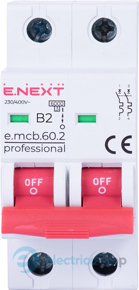 Модульный автоматический выключатель e.mcb.pro.60.2.C 1 new, 2P, 1А, C, 6kA new p042041 E.NEXT