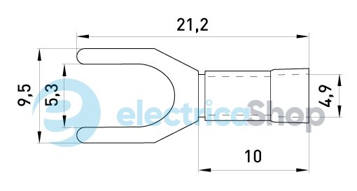 Изолированный вилочный наконечник рассчитан на сети переменного и постоянного тока напряжением до 400 В. Наконечник изготовлен из луженой электротехнической меди, частично покрытой полиамидом.Технические данные