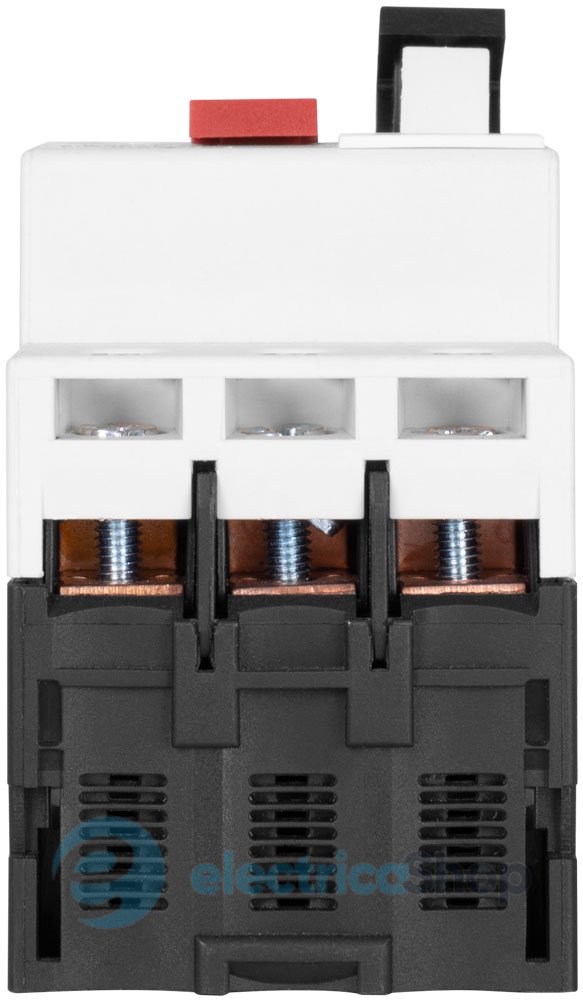 Автоматический выключатель защиты двигателя e.mp.pro.0.4, 0,25-0,4А предназначен для пуска и защиты от перегрузки электродвигателей небольшой мощности. Используются как аварийный или главный выключатель. Выполняют функции: электротепловой защиты трех фаз; защиты от обрыва фаз Обеспечивает защиту от КЗ, уставка срабатывания Im=13 In. Номинальный ток электротепловой защиты устанавливается с помощью регулировочного диска. Включение двигателя осуществляется с помощью кнопки "пуск". Отключение осуществляется вручную нажатием на кнопку «стоп» или автоматически при срабатывании термомагнитной защиты или расцепителя минимального напряжения.