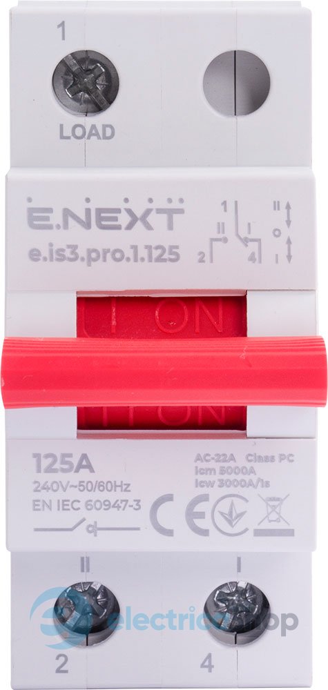 Выключатель на DIN-рейку на три положения e.is3.pro.1.125, 1р, 125А предназначен для переключения электрических цепей, переключения фаз, реверсирования двигателей, ручного переключения на резерв и т.п. Продукт используется в сетях, защищенных от токов короткого замыкания и перегрузки.