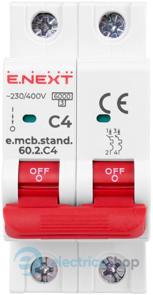 Модульный автоматический выключатель e.mcb.stand.60.1.C2, 1P, 2А, C, 6kA s002102 E.NEXT