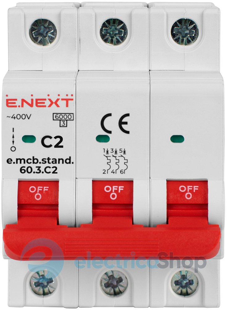 Модульный автоматический выключатель e.mcb.stand.60.1.C2, 1P, 2А, C, 6kA s002102 E.NEXT
