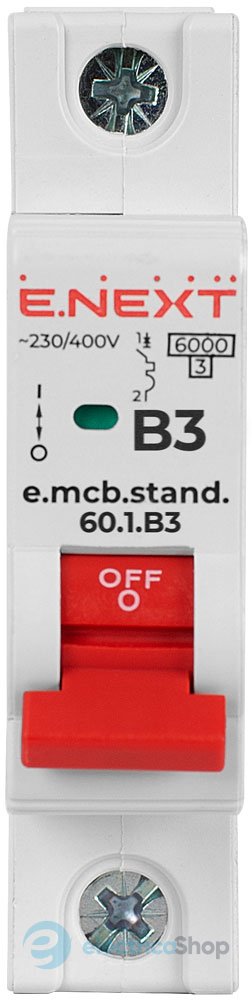 Модульный автоматический выключатель e.mcb.stand.60.1.C3, 1P, 3А, C, 6kA s002103 E.NEXT