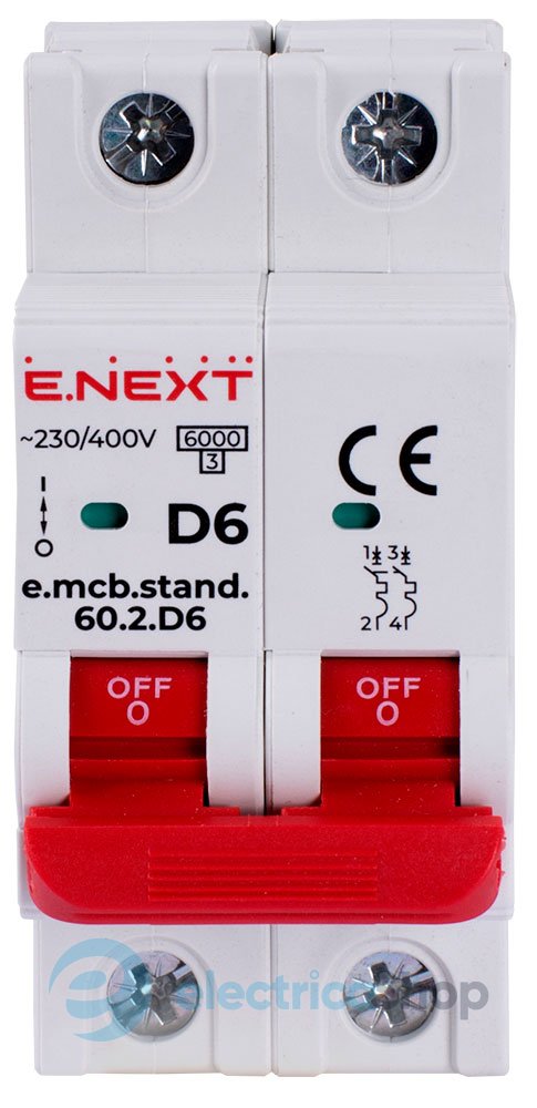 Модульный автоматический выключатель e.mcb.stand.60.1.C2, 1P, 2А, C, 6kA s002102 E.NEXT