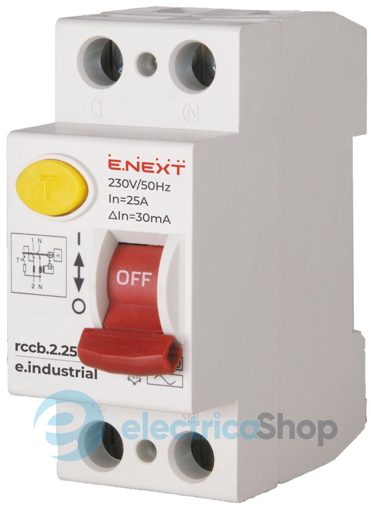 Выключатель дифференциального тока e.industrial.rccb.2.25.30, 2р, 25А, 30мА Устройства защиты отключения предназначены для отключения участка сети при достижении тока утечки на землю заданной величины. УЗО применяются для защиты людей от поражения электрическим током при контакте с токопроводящими частями, а также для защиты оборудования от пожаров вследствие нарушения изоляции проводки.