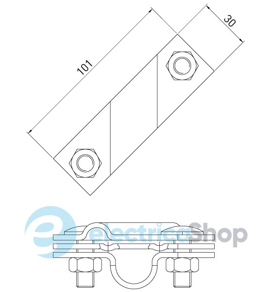 Зажим шпильки заземления предназначен для соединения заземляющего электрода диаметром 20 мм с плоским проводом шириной до 40 мм или с круглым проводом диаметром 8-10 мм.