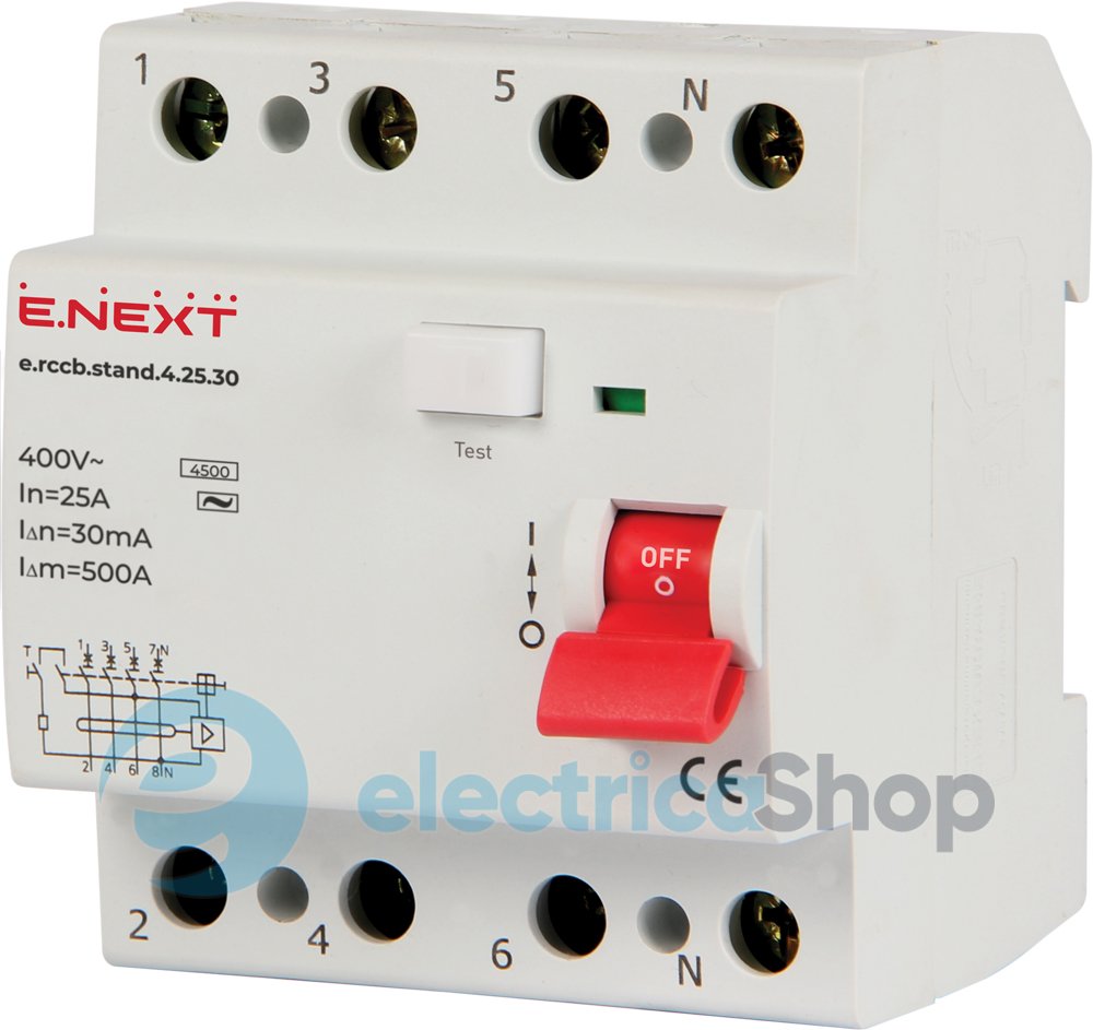 Выключатель дифференциального тока e.rccb.stand.4.25.30 4р, 25А, 30mA Устройства защиты отключения предназначены для отключения участка сети при достижении тока утечки на землю заданной величины. УЗО применяются для защиты людей от поражения электрическим током при контакте с токопроводящими частями, а также для защиты оборудования от пожаров вследствие нарушения изоляции проводки.