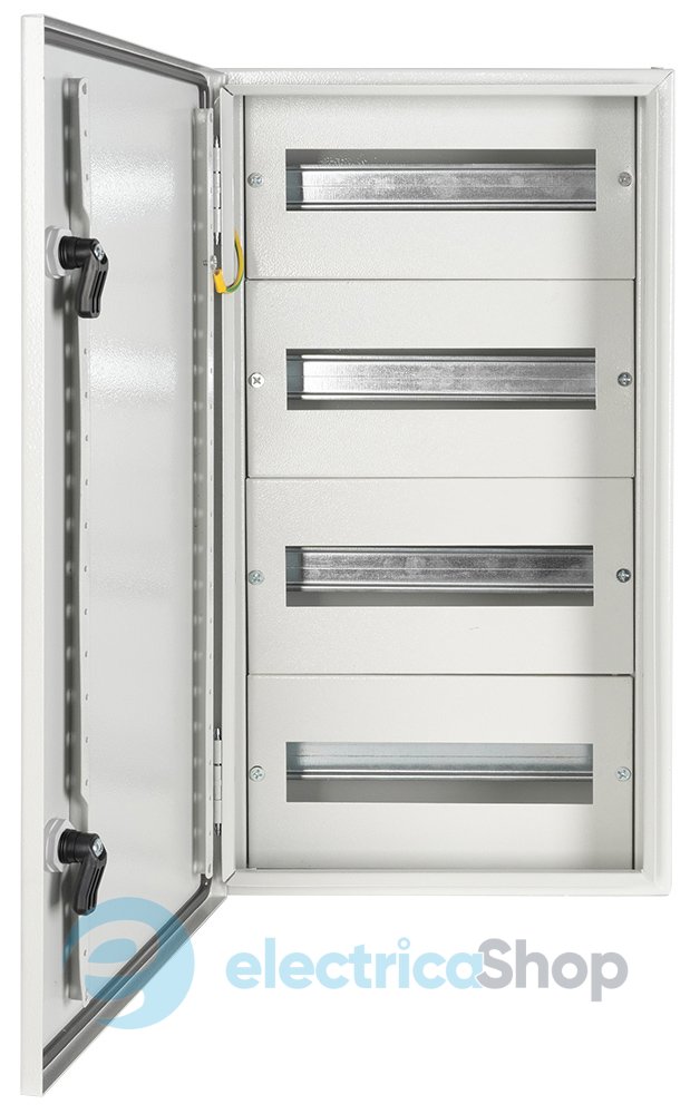 - Комплектация: Корпус - 1шт, Фальшпанель - 4 шт, Дверь с уплотнителем -1 шт, Замок с ключом - 1 шт, Din-рейка - 4 шт, Провода заземления с кольцевыми наконечниками - 1 шт.