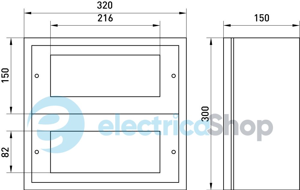 - Комплектация: Корпус - 1шт, Фальшпанель -2 шт, Дверь с уплотнителем - 1 шт, Замок с ключом - 1 шт, Din-рейка - 2 шт, Провода заземления с кольцевыми наконечниками - 1 шт.
