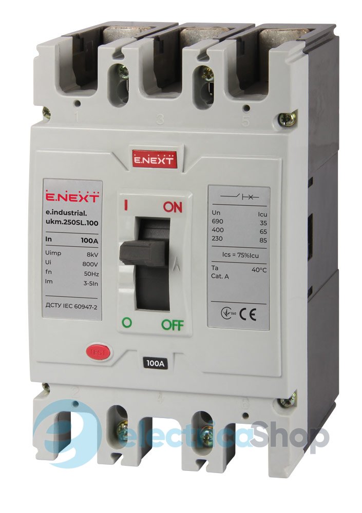 Силовой автоматический выключатель e.industrial.ukm.250SL.100, 3р, 100А предназначен для защиты электрических цепей от долгосрочных перегрузок и токов коротких замыканий, а также для оперативного включения и отключения участков электрических сетей с частотой 50 Гц и напряжением до 6